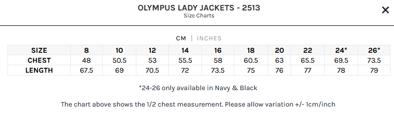 Ladies Size Chart