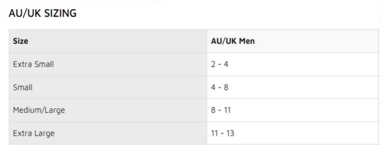 Youth Product Size Chart