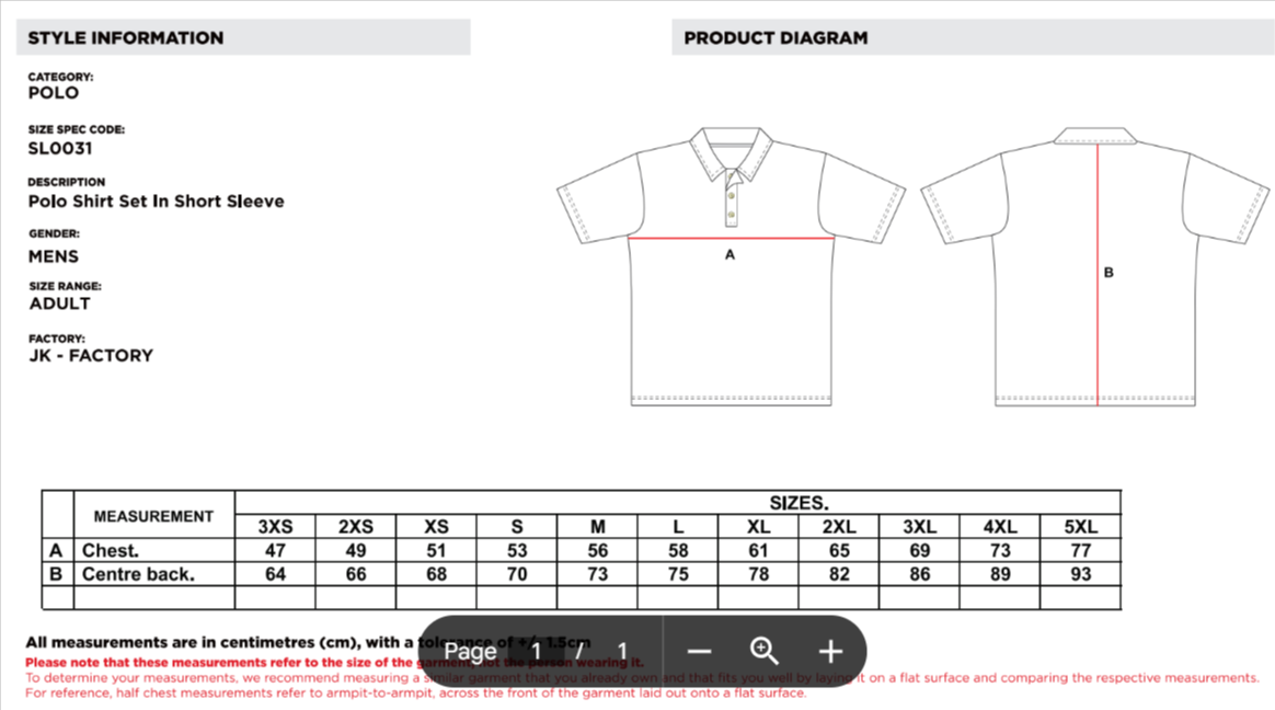 UNISEX Size Chart
